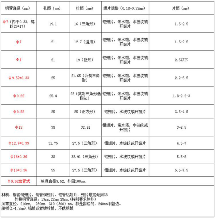 ●冷凝器盘管为铜管错排,铜管与翅片采用机械涨管。