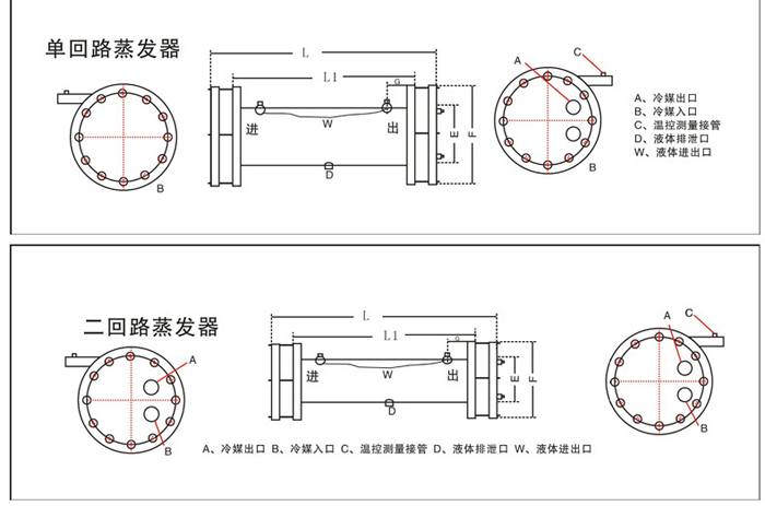 壳管式蒸发器的结构与壳管式冷凝器的结构基本相同,不同的是蒸发器是制冷剂在管内流动,载冷剂在筒内流动。我司生产的蒸发器采用精密车床(CNC和铜管内螺纹机器设备)采用知名品牌高品质的紫铜管材料。高效节能,外观紧凑。
