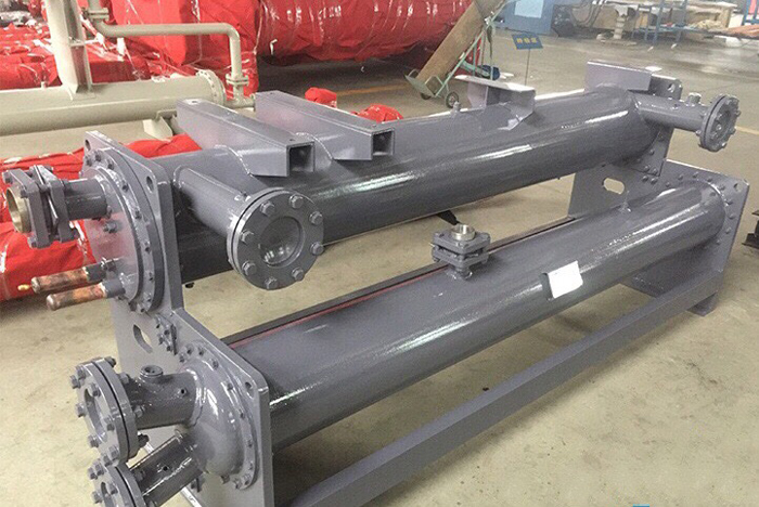 不论是壳管式冷凝器还是壳管式蒸发器,其主要制造工艺及所用的材料都是相同的。都是使用一个大的钢筒,然后在里面焊接安装上数量不等 (根据要求 ) 的低肋铜管组成并隔离成两个独立的通道。经过时间的使用,因为材料疲劳或材料本身质量问题,一些低肋铜管会产生裂纹而发生泄漏;还有是低肋铜管与简体管板的焊接也会因为焊接材料疲劳或焊接质量问题而产生裂纹或砂眼而发生泄漏。