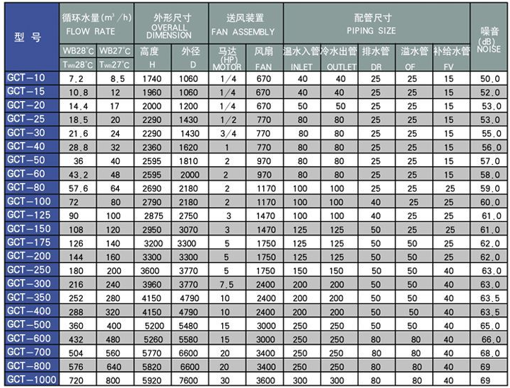 五、按噪声级别分为普通型冷却塔、低噪型冷却塔、超低噪型冷却塔、超静音型冷却塔。